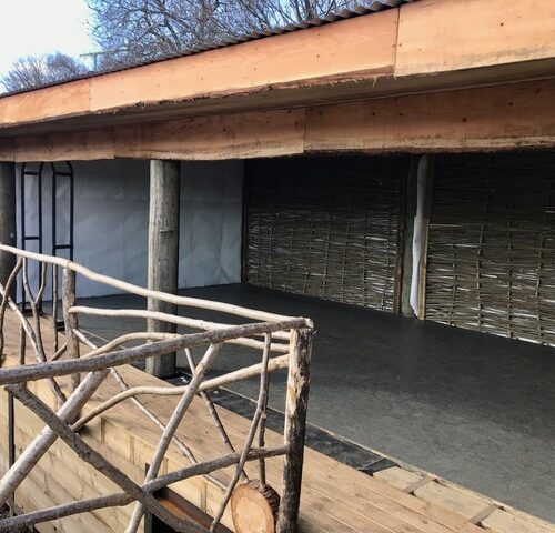 The Apple store was re-built by the MoB maintenance team in the winter of 2022. We used the dismantled high ropes wooden poles as the main building structural posts. The walls have been woven from our home grown willow into hurdles and we are planning to finish them in the summer with a clay daub.