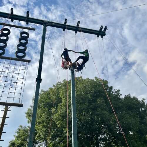 1) Leap of Faith - one person climbs up to the small platform & when instructed jumps off trying to touch the suspended ball.